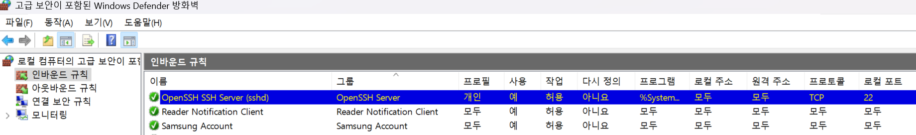 ✅ 2. 방화벽에서 SSH 포트(22) 허용하기